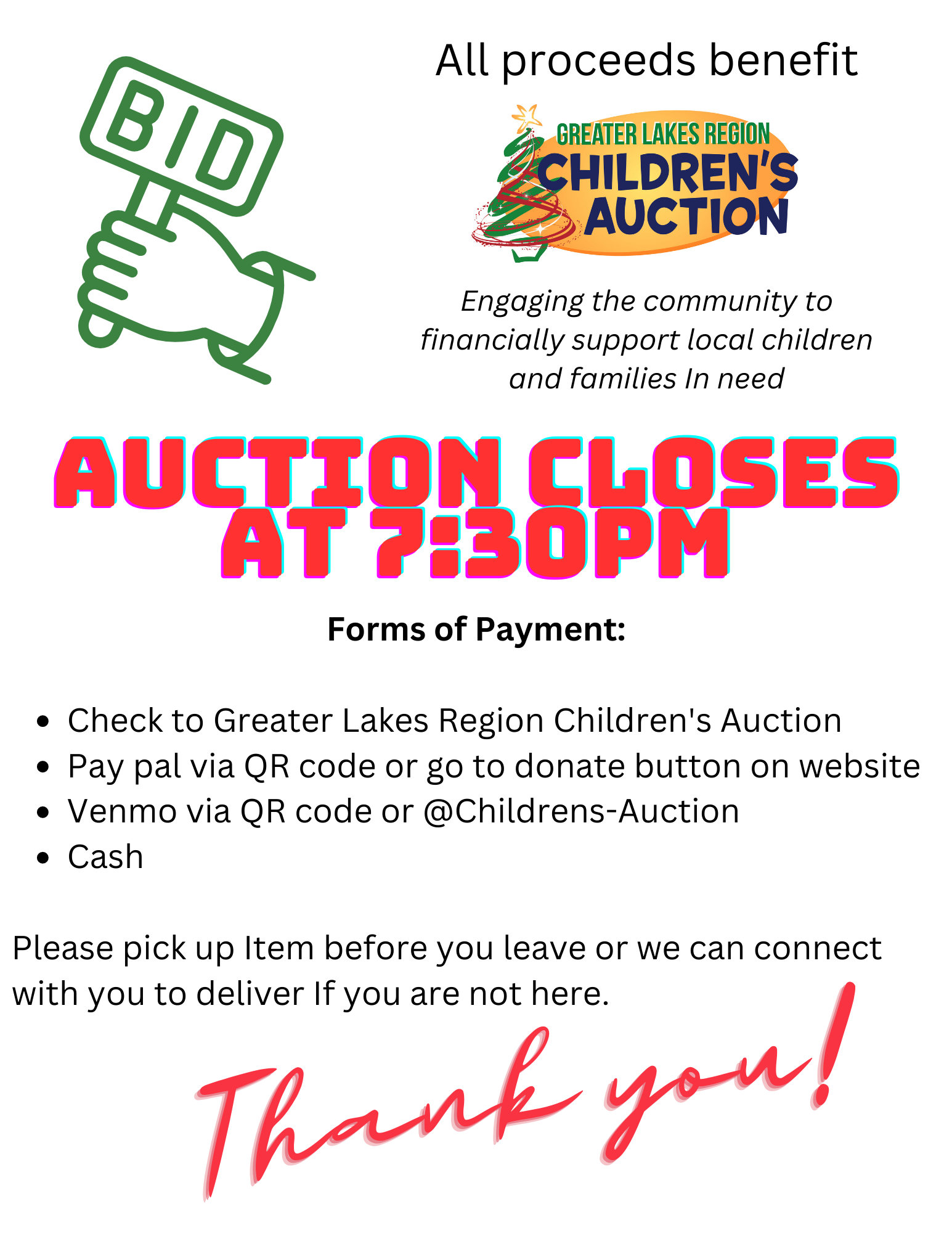 Silent Auction to Benefit Greater Lakes Region Children’s Auction